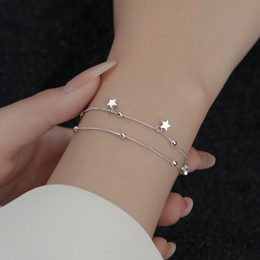 Minimalist Double Layered Silver Star Bracelet