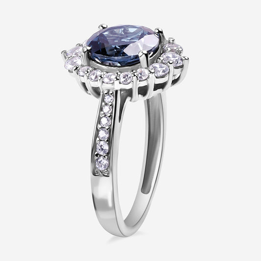 925 Sterling Silver Blue Diamond Cz Feather Ring